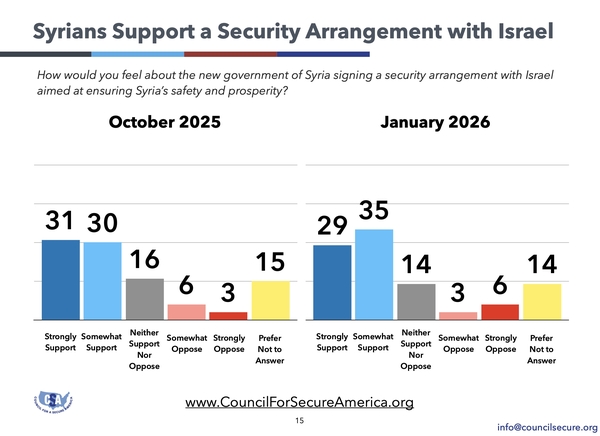 May 22, 2025 update: Another seventeen years later, the Syrian Center for Public Opinion Studies reports that 40 percent of Syrians favor normalization with Israel. Unsurprisingly, given Israel's promise to protect them, Kurdish, Druze, Christians and Alawites most enthusiastically support ending the state of war.