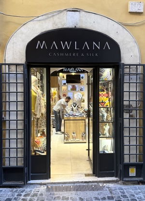 Oct. 4, 2025 update: Seen in central Rome: an elegant store, Mawlana: Cashmere & Silk.